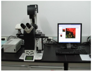 配置汞灯照明系统,可对离体培养的细胞组织进行可见光范围和荧光(紫外、蓝光、绿光激发滤片)范围的观察,另配有CCD拍照系统和图像分析系统,可对观察到的图像进行采集和分析,用于研究细胞内物质的吸收、运输、化学物质的分布及定位等。