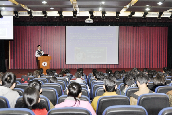 19日上午,陈哲生教授在图书馆演播厅为留学生作临床药理学课程英文授课专题示范课,各院(系)留学生任课教师、在校留学生200余人聆听了讲座。课后,陈哲生教授就英文授课的经验与技巧为老师们进行了生动的讲解。开放式的教学模式及优秀的课堂组织,生动的语言表达,给在场师生留下深刻印象。陈哲生教授还就课堂教学组织、成绩评测、实验教学等方面与授课教师进行了交流。