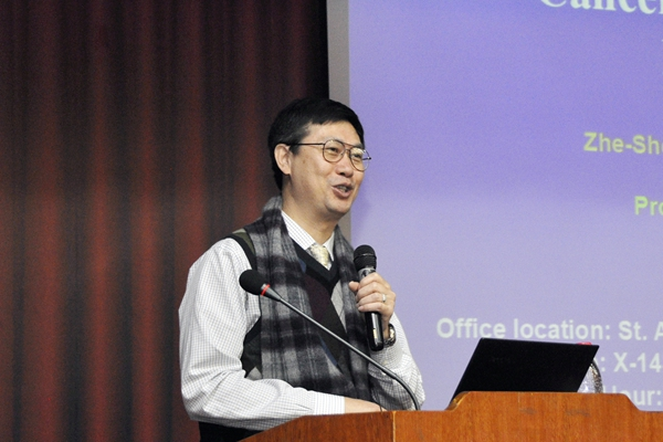 当天下午,陈哲生教授来到药学院与师生亲切交流并作了题为Reversal of MDR by Motesanib (AMG706), a potent multikinase inhibitor in cancer cells的学术报告。据悉,继药学院韦柳娅副教授访学回国后,我校目前还有一位教师在陈哲生教授的实验室访学进修。双方就师生“交换”合作项目已经达成初步协议。