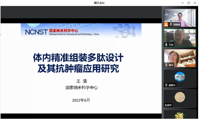 6月10日上午,药学院邀请国家杰出青年基金获得者、国家纳米科学中心王浩研究员做客“云学术-专家讲坛”,作题为“体内精准组装多肽设计及其抗肿瘤应用研究”的线上专题报告,药学院副院长唐金宝主持报告会。